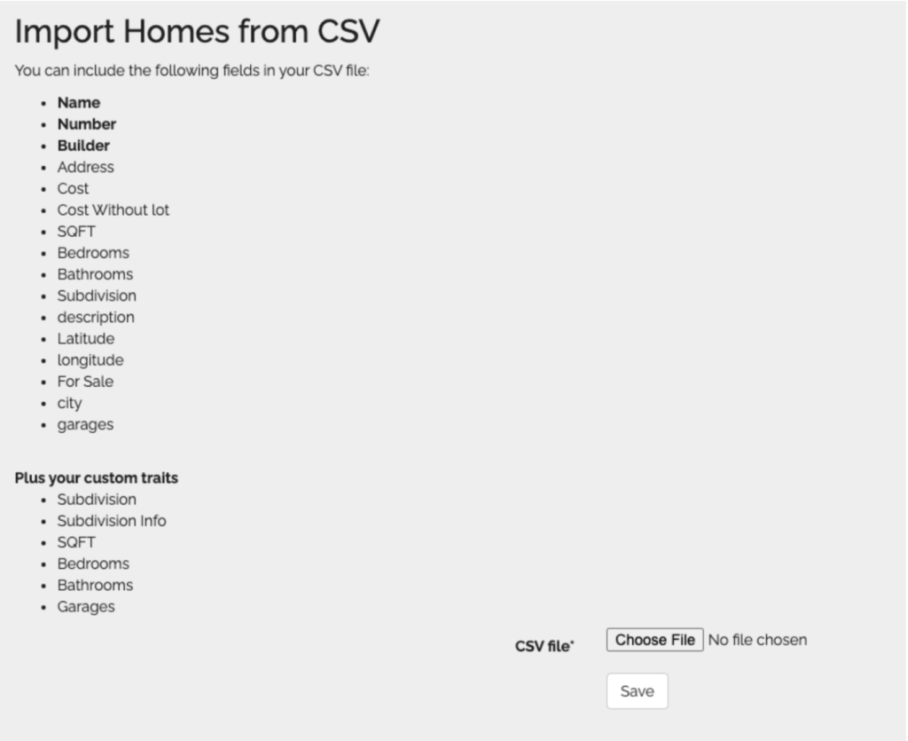 Any client can add Homes individually or upload a CSV File of home information.