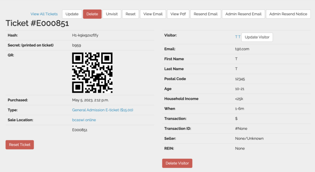 - Update the visitor information (such as name, email, ticket type, etc)