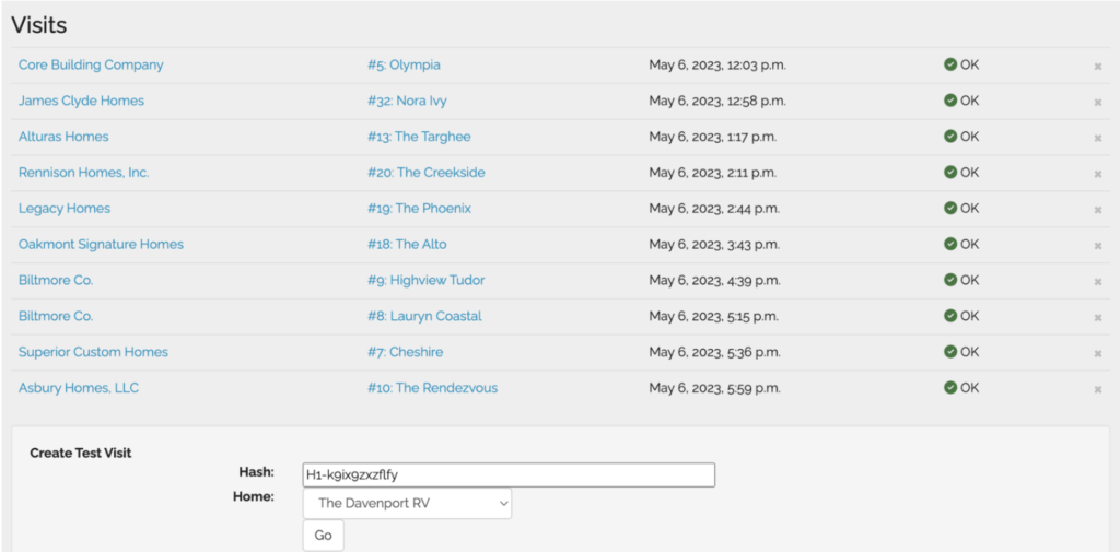 - The bottom section shows a list of every house at which the ticket has been scanned. You can also add more “visits” at the bottom of the list by selecting a home, and clicking go.