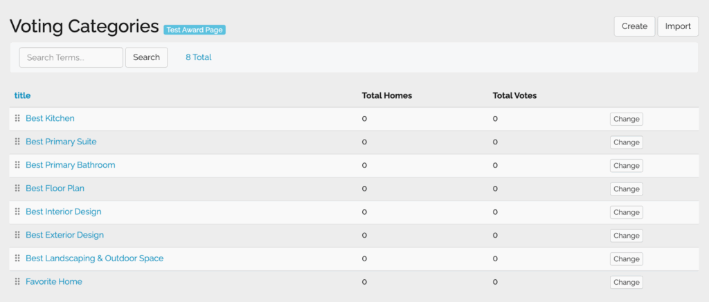- Once you’ve added all your categories, click “test award page” in blue. This will allow you to view your awards page in your browser.
