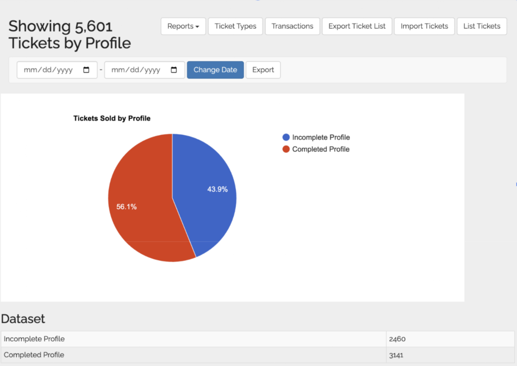 - A table representing the percentage of your visitors that registered a ticket digitally.