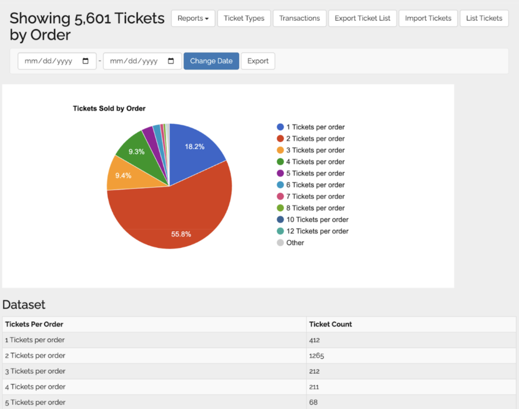 This page will show you ticket purchases grouped by order (helpful for “how many tickets per checkout”).
